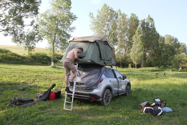 A Mazda itt áll a horgászhely mögött, és csendben tűri, hogy ide-oda pakolászunk benne. Hajnalban harmatos lesz majd tetőtől talpig, kis patakok futnak majd le a szélvédőjén, majd felszáradnak, ahogy a párás tó felett kisüt majd a Nap. És akkor ezek a fickók elkezdenek nyüzsögni, és nem hagynak majd aludni – ez olyan biztos, mint az, hogy Iván most fogta meg a második keszeget.