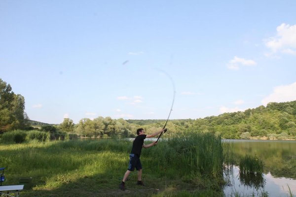 Na, és akkor elértük végre a tópartot, ahol csináltunk internetet, meg kettő és fél mozdulattal kinyitottuk a tetősátrat, és ezzel logisztikai megpróbáltatásaink véget átmenetileg véget értek. Közben Iván gyalázatos módon kihúzta magát a telephely kiépítéséből, de ráhagytuk, mert láttuk, ahogy elvonási tünetek tömegével küzdve a botja között matat. Fel is szerelt két botot, be is dobta őket, és, és, és... 10 perc alatt fogott egy tenyérnyi vörösszárnyú keszeget. Amit ép most eszeget...ne, ha nem dobtuk (nem dobjuk! engedjük-Pista) volna vissza... mármint a halat. Aztán a félmeztelen, habtestű, de nem hableány Pista csatlakozott, és per pillanat ezek ketten se látnak, se hallanak, a parton matatnak, és nagyokat kiáltsanak, amikor majdnem ráharap egy-egy horogra valami hal.