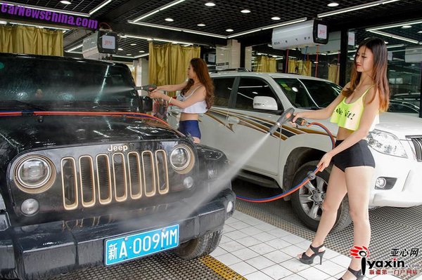 Számos nyári autósfesztiválnak és –találkozónak elengedhetetlen kelléke a bikinis autómosás. Ebből meríthettek ötletet Kínában is, amikor A Xinjiang tartományban fekvő Urumqi városában nyitottak autómosót. A munkát ugyanis igen lengén öltözött, magassarkút viselő lányok végezték.