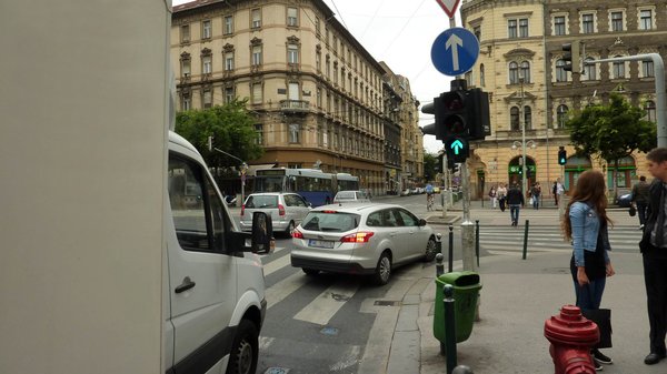 Kicsit érthetetlen, hogy miért tiltják itt a jobbra kanyarodást egyáltalán, hiszen aki tévedésből kihagyja a Rigó utcai lehetőséget, átkeveredik a József körút túloldalára, ahol hosszú percekig tartó kacskaringózás kezdődik a kis utcákon, mire visszakeveredik a körútra, az Oktogon irányába.