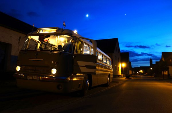 Kicsit féltem azért az úttól. 750 kilométer egy modern, légkondicionált, dönthető szövetüléses, légrugós buszban sem kellemes ilyenkor nyár táján, hát még egy laprugós, a hátsó kerekeiben áttételmódosító (és hangosan sivító) bolygóművet hordó, alacsony és fix támlás, a szélén műbőr üléses, lassú veteránban. Imádom a farost, mérhetetlenül büszke vagyok rá, hogy a mi iparunk egy ilyen csodát elő tudott állítani akkor, a vasfüggöny mögötti időkben, már attól a lehetőségtől is elájultam volna, ha egy kétszáz kilométeres túrára elvisznek vele. De azért egy nap oda 750, egy nap Ornbau, és egy nap vissza 750 kicsit húzósnak tűnt. Meggyötört, szótlan, a legkisebb súrlódásra ököllel ütni hajlamos, vörös szemű veteránosok késő éjjeli megérkezését vizionáltam. Ha a busz ugyan el nem romlik addig.