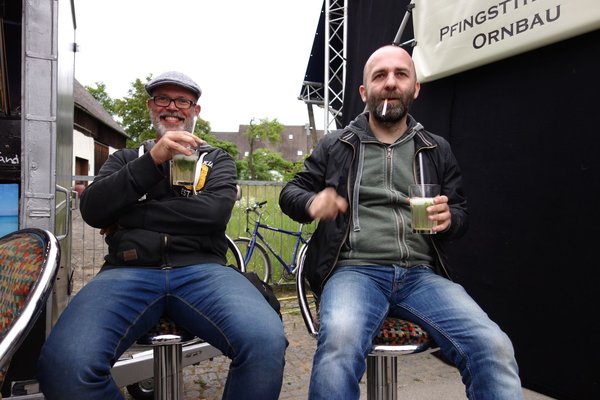 Korival a kezünkben tettünk egy kört a két egymással ellentétes dolgot művelő táborban, amely egyszerre bontogatta a szárnyait a másnapi nagy rohamra, másfelől épp készült nyugovóra térni. A naplementében domború, lapos és sátorral megemelt autótetők csillantak meg, német csávók, sörrel kezükben, földhöz mind közelibb pózokban, decibelben mérve mind lelkesebb interakcióval üdvözölték a delírium és a hűvös este közelgő leheletét. Fogytak a wurstok és a kínai tészták (idén utóbbi újdonság volt Ornbauban), szőke faszik a tejcsokitól az étcsokiig terjedő színskálájú, nálunk menekültnek, ott inkább barátnőnek nevezett csajokkal az oldalukon múlatták a boldog estét.