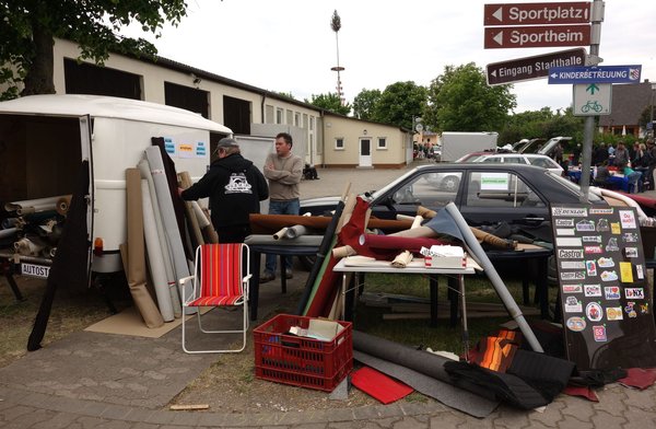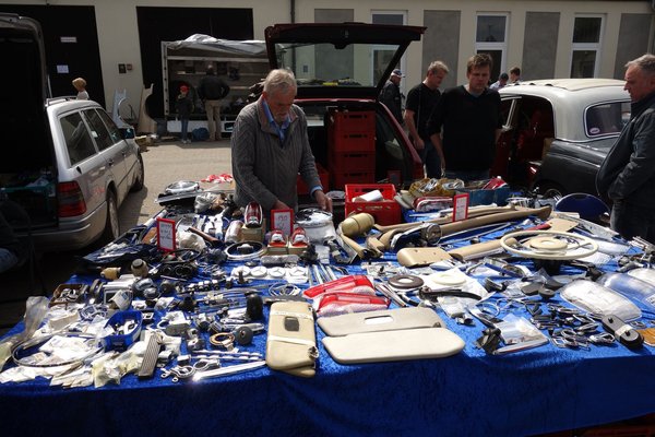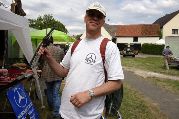 Ornbauban – halk őrjöngés. Mindenkinél. Már az is kisebb csődületet okozott, ahogy az előző este gyakorlatától eltérően a városka másik utcáján át, a nyolcméteres Merci-maszkon át gördültünk be a területre. Fényképező németek, hollandok és talán még guayanaiak is rajzottak a busz körül, mi meg vetettük be magunkat az utcákra, ahol autók és standok bájos összevisszaságban alkottak egyfajta műszaki perzsaszőnyeget. Mint a poszt elején már írtam, nem igazán vásárlási célzattal érkeztem, inkább csak szórakozni, de a börze már a nyers mérete miatt is szinte szippantotta volna ki a pénzt a zsebemből. A VdH 2013 óta csak kétévente tartja meg a treffent, mert a maroknyi szervezőcsapat nem bírta cérnával a régi, évenkénti hajrát. Ennek megfelelően kétévnyi készülődés gyümölcse ömlött ki most az utcára, s olyan dolgok is előkerültek, amit a neten fémdetektorral sem talál az ember.