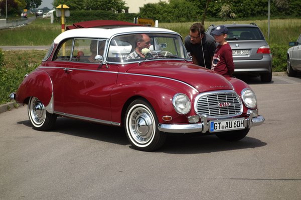 A mégoly márkamániás ember gyomrát is megterheli azonban az ilyen Mercedes-mennyiség, egy idő után már szinte vágyik a szeme valami Opel Kadettre, akár még egy Wartburgra is. Bingo, utóbbi majdnem meglett. Egy Auto-Union 1000 S ácsorgott indulásra készen a Diska közért parkolójában. Három henger, a Wartburggal közös DKW-gyökerek, de ilyen finom, purrogó hangja semmiféle Wartburgnak nincs, ennyire füstmentesen eisenachi autót még nem láttam és hallottam járni.