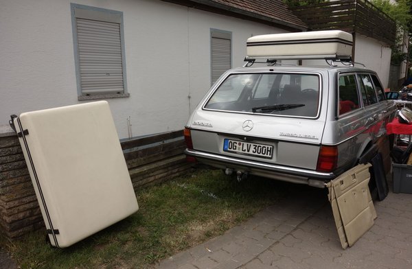 Ornbau egyébként az a hely, ahol az ember a legritkább régi prospektusok lapjait látja megelevenedni, az eladó cuccok között láttam például gyári, tetőre való kofferszettet 123-as kombi Mercihez, krómozott, gyárinak tűnő tetőcsomagtartót állólámpás kupéhoz(!), s szintén stuttgarti speckós kerékpártartót 190-eshez, tetőrudakkal együtt – utóbbi mindössze 50 euróba került, el is vitték még első este, sofort.