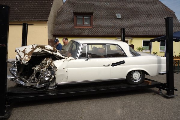 De a csúnyábbak sem tartoztak épp az út szélén letámasztott Moszkvics-kategóriába: 2950 euróért árultak egy egész szép belsejű, tűrhető külsejű, kissé foltos és matt, szerényebb lakatolásra szoruló, kormányváltós(!) 200-as benzinest – szürke volt és második szériás, ritka kombináció... No és a totál rozsdás, mechanika nélküli Pagoda 230 SL, ami a fűbe ledobva dekorációként szolgált a szabadtéri kávézó mellett? Vagy a zöld Ponton, amit keskeny maszkosnak (az a régi széria) hirdetett ugyan a papírja, de olyan ütközők és hátsó lámpák voltak rajta, mint az én (kései) autómon? Kicsit megnyugodtam az ára láttán: a repedező fényezésű, lerohadt kilincsű, törött és vegyes belső terű, csörömpölő dízelládáért 13 ezer eurót kértek.