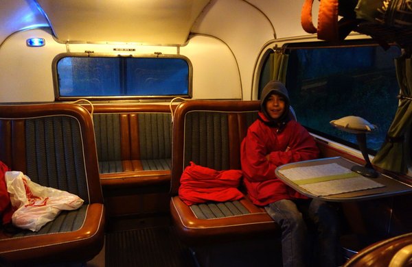 Persze, hátul, ahol ültem, elég nagy volt a zaj, beszélgetni csak emelt hangon lehetett, amikor nyitva volt az ablak, akkor már csak kiabálva. A diffi és a bolygómű sivítása olykor-olykor szép állóhullámokban rángatta meg párszor a dobhártyánkat. Viszont ahogy mászkáltunk a szellős utastérben, mindenki felfedezte az alacsony háttámlák tagadhatatlan előnyét – több sor tudott egyszerre beszélgetni egymással, pláne elöl, ahol szinte zajtalan volt a haladás.