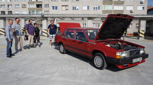 Hétfő délután megvolt az, amit Vatera-aukcióknál ritkán szokás - még a leütés előtt a leendő vevők megtekinthették az autót. Jó páran összejöttünk a szerkesztőség melletti parkolóház tetején, Vasfogat még egyszer utoljára lemostam, kiporszívóztam, hadd csillogjon. Már amije csillogni tud.