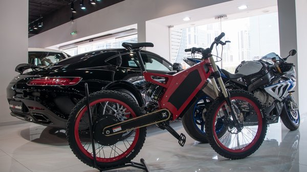 Két Rolls-Royce és egy AMG Merci közé egy elektromos downhill bringát is letámasztottak, simán ellopja a showt az autók elől. Valószínűleg azéért, mert ahogy arról már szó volt, nagyjából nincs az az autó, amellyel villantani lehet, de drága bringával viszonylag kevesen járnak még. És ahogy a bringát próbálom fotózni, megáll egy B 65 S a kirakat előtt. Tudják, ez az a 800 lóerősre tuningolt G Merci, amit a másik szalonban 145 millióért hirdettek, az enyhe homasitás beütés ellenére is.