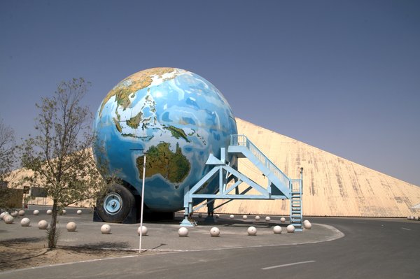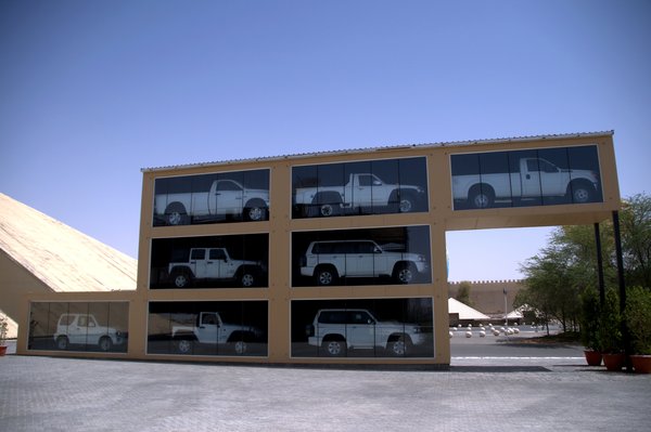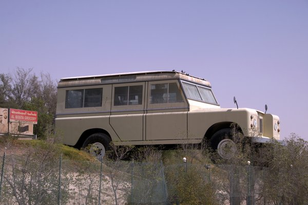 És ha eddig nem hangsúlyozta volna eléggé a terepjárókhoz való vonzódását, sejkünk csinált egy kisebb boltot, benne egy kávézóval. Kedves dolog, hogy az épületet egy Land Roverről mintázta, ahogy elhajtunk a múzeum melletti autópályán, a piramis után ez üti meg elsőként a szemünket. Valószínűleg évek óta nem nyúltak hozzá, hasonlóan lepusztult, mint a múzeum legtöbb kültéri építménye.