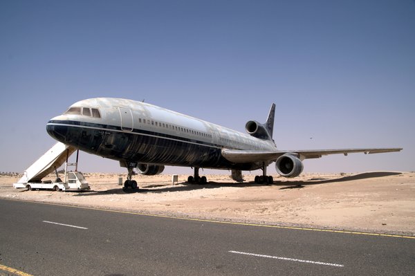Azt hitték, majd pont egy utasszállító repülője nem lesz a sejknek? Tévedtek! Ráadásul ez a poros, kopott állapot kellemesen posztapokaliptikus hangulatot teremt a ritka Lockheed Tristarnak.