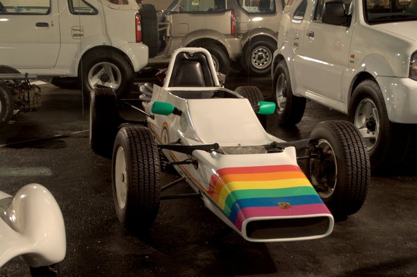 Amikor megláttam, nem tudtam pontosan mi is ez, viszont egyik gépnél sem éreztem, hogy ennyire haza akarom vinni. Egy kis netes keresgélés után pedig már a bűnelkövetésre is hajlandó lennék a birtoklásáért cserébe. Az Abarth 500 Formula Italia egy hetvenes évek elején gyártott, együléses, 120 lóerős formulaautó, egy elhízott lepke súlyával. Még a szivárványos dekor sem tudja elrontani.