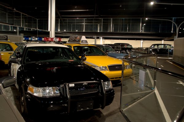 a tárlat kialakításában, ezek a Ford Crown Victoriák sem lógnak ki a káoszból. Az ember szinte látja maga előtt a sztorit, ahogy őnagysága taxiba pattan a Wall Streeten, majd tíz perc múlva úgy megtetszik neki a Ford, hogy habókosan ajánlatot tesz rá, végül pedig boldogan vezeti a reptérre. És ha már képzelt történet: hogy kerülhet ide a rendőrautó?