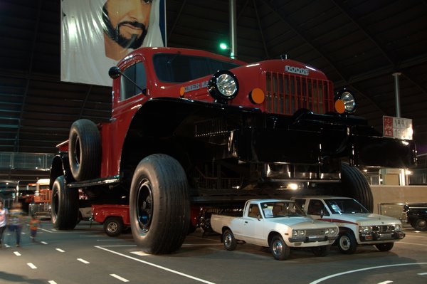Ki nem találnák, melyik a sejk kedvenc járműve. A Dodge Power Wagon még 1994-ben épült annak emlékére, hogy ez volt az olajüzlet fellendülésének egyik legjellegzetesebb járműve. Minden alkatrész mérete az eredeti hatvannégyszerese, a belső felszerelése pedig egy tengerjáró luxushajóról származik. Egyvalami szabott határt a megalomániának: ennél nagyobb kerekeket nem talált a konstruktőr, ezek is olyan teherautókról származnak, amelyekkel a fúrótornyokat szállították. Akármennyire hihetetlen, mozogni is képes, hála a hathengeres Detroit Dieselnek, igaz, csak rövid távokon. Elsősorban mégiscsak lakóautó, még ha 50 tonnás is.