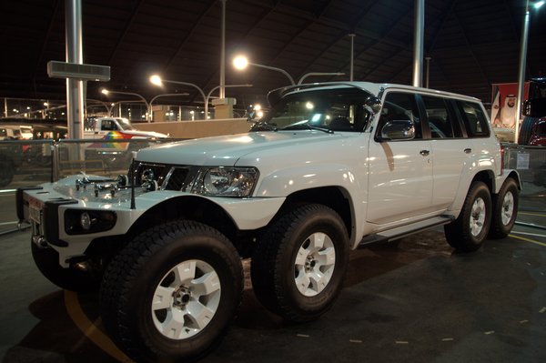 Az igazán elborult dolgok kapásból a népautók után kezdődnek. Annyit sikerült kiszedni a teremőr bácsiból, hogy ez a nyolckerekű Nissan Patrol az utolsó autó, amely bekerült a tárlatba, 2010-ben építették. Természetesen működik, csak akksi és benzin kell bele. Az ominózus, Abu-Dzabiban forgatott Top Gearben ez is feltűnik, amikor Hammond azt emlegeti a hatkerekű G Merciben, hogy az ő kocsija fut a legtöbb keréken a sivatagban.