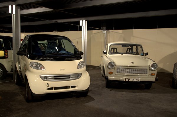 Egysíkúsággal nem vádolhatjuk a gyűjtőt, hiszen a népautóktól kezdve a csillogó luxusjárművekig mindennek helyt ad a piramis. Ugyan belenézni nem tudtam, de meg mernék esküdni, hogy sem a Smartban, sem a Trabantban nincs több kilométer, mint amit a gyári bejáratásnál beléjük hajtottak. Az, hogy még a színük is hasonlít, megint csak Hamad megszállottságát mutatja.