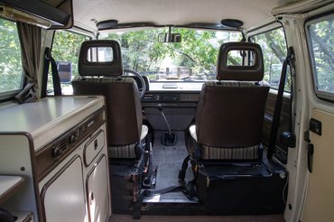 A hátsó ülés egyben ágy is, egy könnyű mozdulattal előreugrik az ülőlap, a hátlap pedig vízszintbe dől, így kialakítva egy kétszemélyes, kényelmes szivacsos fekvőhelyet, alatta tárolóval. Ezt a fajta ágy-ülést egyébként rock'n'roll-ágynak is szokás hívni. A hivatalos csomagtérbe, a matracok mellé még beszabtak egy álló szekrény, illetve a tetőbe is egy nagy zárható fiókot, amiben hangszórók is helyet kaptak.