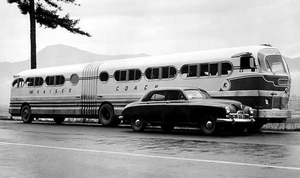 Nemhogy az első, de a világ második csuklós busza sem hazánkban, hanem a tengerentúlon készült 1946-ban. Henry J. Kaiser nagy újító volt, egész életében kereste az akkoriban új könnyűfémek felhasználását a járműiparban. A világ első csuklós buszának megalkotása is az új anyagok minél szélesebb felhasználásának demonstrálására készült.