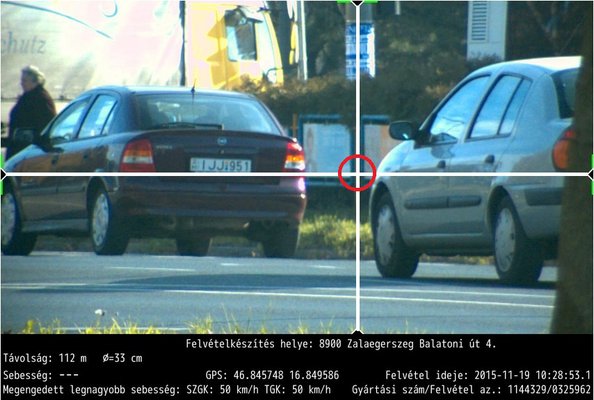 Májer úr esetében minden felborult, hiszen a gép azt sem tudta pontosan megállapítani, hogy az első felvételen milyen messze van tőle az autó. Nem jelzett hibát, amikor egy tizedmásodpercen belül 112 méterről 77-re csökkent a Renault távolsága (ne feledjük, valójában ekkor is távolodott), majd fokozatosan ismét növekedni kezdett, míg 81 méternél megállt a lámpánál. A képeken jól látszik, hogy az autó eközben legfeljebb nyolc métert gurult előre. A gépnek egyszerűen nem tűnt fel, hogy mást érzékel a kamera és mást a távolság-, illetve sebességmérő egység. Nagyobb baj, hogy ezek az eltérések annak sem tűntek fel, aki elkészítette a rendőrségi határozatot.