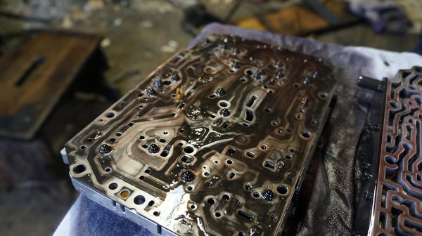 Aki látott már automataváltót belülről, az tudja, hogy apró hajszálrugók, nyomáshatároló kis golyók (biztos van pontos terminus technicus) és apró, műanyag határolók tömkelege. Szépen, óvatosan szét is húztuk a két sajtfelet, aztán összenéztünk: te baszdmeg, ebben szürke sár van. Mindenütt. Ezen a rugószett nem segít. Most vagy nekilátunk, és aprólékosan, pár nap alatt szépen kipucolunk mindent (és akkor még nem biztos, hogy az előzőleg soha ki nem cserélt olaj miatti sárból nem marad), és sziszifuszi munkával összeillesztjük. Ennyi időnk nincs, a végeredmény pedig még mindig kétes lesz.