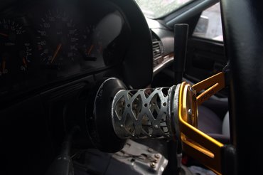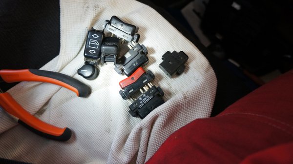 A többi már gyerekjáték volt. A kapcsolók szépen lejöttek, a burkolatot az eredeti helyére visszabújtatva pedig megszűnt a zörgés a középkonzol tetejéről. A kis csavarokat, amelyek fixen a helyén tartották azt és a hamutartót is, pótoltuk. Azonban egy gombbal kevesebbet hoztam a bontóból, így az a hely kimaradt, de majd teszek oda valamit. Sajnos csak ilyen sokgombos hibátlan betét akadt, így most van egy funkció nélküli kipörgésgáltó-gomb és egy dallamkürt is. Cserébe nincs keresztbe repedve és nem hiányzik róla több helyen a kitört fabetét. Valamit valamiért.