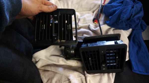 A hátsó légrostély is pillanatok alatt bepattant a törött régi helyére, de hiába pucoltam el szépen A dologgal, mert nem fog működni. Ugyanis a könyöklő alját felpattintva nem látszik semmi. És ez a baj. Ott futnia kéne egy lapos légcsatornának (fekete műanyag) meg egy bovdennek, amelynek vége összeakad a légrostély bovdenének kampójával. De nem fut, kiszedték azt is és a lapos csövet is. Ez, valamint hogy a középkonzolt is kibarmolták nem egyszer belőle, talán azt mutatja, hogy valamit hoztak-vittek itt, amiről nem kellett, hogy tudjon senki, aki belenéz az autóba?