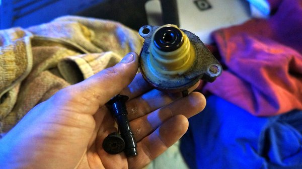 Kivesszük ezt a szelepet, majd kivesszük a szelepet a másik, földön heverő váltóból is. Sziszegtetjük, valami nem jó. Hopp, egy olajcsepp jelenik meg rajta: át van szakadva a membrán, ez is lehet a baj. Széthúzzuk, összehasonlítjuk a belét a másikkal, majd berakjuk a bontottat, az jó. De persze ki tudja, hogy merre van tekerve a nyomás azon. Újabb próbaút. Nem jó: ötezerig hagyja forgatni a motort váltás előtt, ráadásul gázelvételre sem vált fel, viszont egyáltalán nem csúszik. Így nem maradhat, ez tönkrevágja a motort hidegen és 1800 litert fog fogyasztani. Vissza, műhely, emelő, hümmögés.