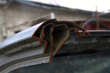 Az már az utasoldali ajtónál látszott, hogy járt ott valamikor valaki: a kis takaró-háromszög fülei le vannak törve, az ajtóbehúzó pedig azért lóg, mert a másik oldaláról hiányzik a lemezanya és maga a lemez is. Szét sem kellett volna amúgy bontani, de kíváncsi voltam, hátha csak be van esve. Nem volt, így kerestem a műhelyben egyet, meg egy hozzávaló csavart és kész, mehetett vissza. A patentok közül egy sem tört el, szépen visszapattant minden a helyére.