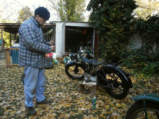 Azt már rég tudtam, hogy az egyik angol újságíró, a szabadúszó Andrew English nagy oldtimer-fan. Még régről van egy Aston Martin DB6-osa (eggyel a James Bond-féle verzió utáni, igazából csak a fara kicsit más), amit akkor vett, amikor ezek az autók még viszonylag olcsók voltak – olyan húsz évvel ezelőtt. Mostanában csak hüledezik az árak egekbe menetele láttán, utolérte őt is a veteránautós végzet: olyan értékes lett a kocsija, hogy már nem meri minden sáros versenyen bevetni. Ezért nemrégiben vett egy babakék Triumph TR2-est, hogy a kedvenc oldtimer-ralijain megint legyen egy padlógázon a földúton zúzatható autója. Emellett van még egy száz köbcentis, háború előtti, kétütemű Peugeot motorbiciklije is, amit azért vett, mert a felesége megtiltotta neki, hogy speedmotorja legyen – miután meglátta, hogy motorozik. Ennek ellenére a Peugeot is furcsa versenyhasználatnak örvend, Andrew ugyanis valami háború előtti, száz köbcentis motoroknak kiírt kategóriában próbálja megdönteni a körrekordot évről évre – a Man-szigeten...