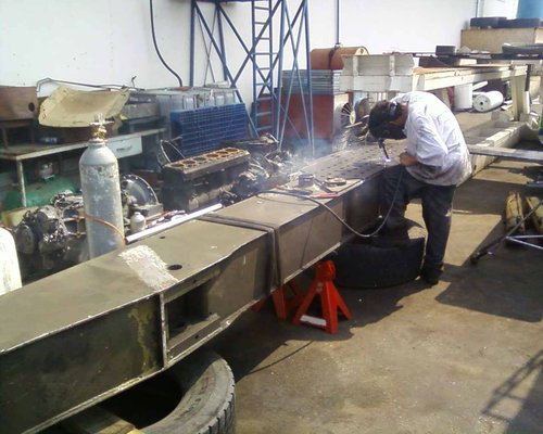 Miklós tehát kitalálta a konstrukciót, a mérnök utólag megtervezte, az érdemi munka legnagyobb részét viszont Miklós alkotótársa, Bandi végezte. Parádi András szintén komoly hivatásos jogosítvány-felhalmozó, és mintha egész életében a monstrumépítésre készült volna; hegesztő, autószerelő, autóvillanyász. Hogy Bandi hány órányi hegesztést ölt a monstrumba, nem tudják megmondani, de 30 tekercs drót fogyott, ami tekercsenként 12 kilót jelent. A 20-as lemez is úgy van rávasalva a gémcsonkra, hogy 80-as lukakat fúrtak bele, szám szerint negyvenet, úgy is végighegesztették a furatokban. Ekkora popszegecs ugye nem létezik, ezek a hegesztések pedig már fel tudják venni a nyíróerőt. Most 24,5 tonna a kamionmentő saját tömege, ennek megfelelően a gém két nagy hidraulika-munkahengere valamilyen japán hegybontóból származik. Bontóban vették, nem volt drága, úgy 50 ezer forint darabja. A felújítás már húzósabb összeg volt, 600 ezer a kettő, nem csoda, hogy ennyire potom áron meg a bontott hegybontó-munkahenger.
