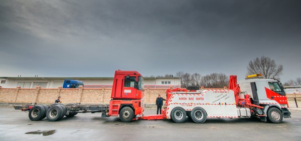 Pontosabban kamion- és buszmentőt, mellyel Miklós a korábbi és a jelenlegi munkáját foglalja keretes szerkezetbe. Nemzetközi buszvezetőként kezdte, aztán összeszedett annyi pénzt, hogy vehetett egy használt autószállító kamiont Németországban. A telephelyük a százhalombattai ipari parkban van, itt kezdődött három éve a nagy ívű hobbiprojekt: egy dupla darus, tengelynél emelő kamionmentő tervezése, megépítése, és persze a papírozás. Miklósnak amúgy a motorozás (is) hobbija, így van meg neki a teljes jogosítványkategória-póker, vagy inkább szín-számsor, az ABCDE, plusz a sporthajó jogsi.