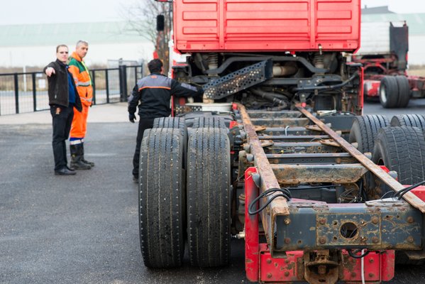 Megduplázták a vontató levegőtartályát, ami így már kétszer 100 liter, és arra jó, hogy kimehetnek egy kamionért, bevontathatják a vontatót, aztán visszamehetnek, és a rakott pótkocsit is be tudják vontatni, mert van levegő a fékrendszeréhez. Meg persze ha sokat állt, indulás előtt többet kell járatni a motort, hogy feltermelje a levegőt. Mindez úgy derül ki, hogy a demó kedvéért kihalásznak egy felújításra váró Renault Magnumot a sorból, és annak is levegőt kell adni, hogy vontatni lehessen. A végén persze inkább hoznak egy raklapnyi alapterületű bikagépet, azzal indítják be, mert egy parkolóhelyre a vontatóval bejátszani egy ekkora dögöt már nekik sem játék.