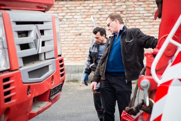 Miklós egyébként a kamionjai koordinálásával, a sofőrök eligazításával, az útdíjak intézésével tölti a napjait, kidolgozza a menetleveleket, bejár a Lagermaxhoz, intézkedik. Ritkán van szükség kamionmentésre, hiszen a legtöbb hibánál inkább kimennek a helyszínre, és ott javítanak, mondjuk ha egy kardán leszakad. De ha egy motor beáll, azt be kell hozni. Miklós ugyanakkor nem akar kamionmentéssel foglalkozni, inkább kölcsönadja az autót egy partnercégnek. De látszik rajta a gépjárművezetés iránti elhivatottság, amikor a demonstráció végén a kamionmentővel betolat egy elég passzentos helyre. Egy pillanatra úgy tűnik, igazítani fog, de aztán csak nekem volt furcsa az ív, mert végül egyenletes tempóban, igazítás nélkül rakja be a helyére.