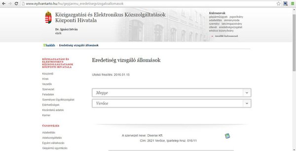 Az elrontott eredetiségvizsgálat időtartama ezúttal is körülbelül fél óra lehetett, a módszerek is pontosan ugyanazok, mint az országban működő többi állomáson évi 450-500 ezer esetben. A verőcei vizsgálóállomás ma is szerepel a vizsgálatot felügyelő és a hatósági bizonyítványt kiállító Közigazgatási és Elektronikus Közszolgáltatások Központi Hivatalának (KEKKH) honlapján, sőt, amikor kerestem a verőcei állomás tulajdonosát, a hivatal is a fenti címet adta meg.