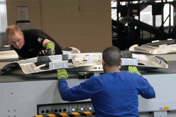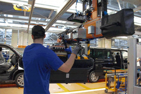 Több szerelési fázisnál is igyekeztek könnyebbé tenni a munkások dolgát, számtalan alkatrészt manipulátorokkal mozgatnak, akár gurulós székből is a helyére lehet csavarozni vagy pattintani egy-egy elemet. A Transporterek tetején dolgozók egy emelvényről hajolnak a kaszni fölé – az emelvény azon részeit, ahol a munkás teste ránehezedik a szerkezetre, vastagon párnázták.