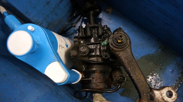 Minden, de tényleg minden, amihez nyúltunk még gyári alkatrész volt, 1991 márciusi cikkszámmal. Azaz szinte napra pontosan 25 éves. Minden: az összes lengőkar, az összes szilent, az ezer forintos szervóolaj-szűrő, a csavarok, kormányösszekötők, a Pittman-kar a kormányműben... a rárakódott sár alól - némi drótkorongozás után – minden alkatrész kiadta a titkát és világosan látszott rajtuk a kis csillag, a cikkszám és a gyártás éve.