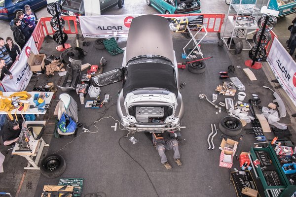 A Z4 végül időre elkészült, és mikor Nokta Balázs beindította, már komoly tömeg állta körül az autót. A négy csőből diszkrét dörmögés hallatszott csak, ami nem is csoda, hisz a zajnormáknak meg kell továbbra is felelnie a BMW-nek, különben esélytelen lett volna az átépítés engedélyeztetése. A Z4 pompakocsiként indult meg a kis pavilonból a nagyszínpad felé, a harmadik napja energiaitalon élő szerelőcsapat és sok lelkes látogató pedig temetői menetként követte. A lemenő napfényben, sárga csíkok ide vagy oda, jól mutatott az autó. Az ültetés is igen fotogén lett, bár egy cigisdoboz felett is csak akkor érdemes áthajtani, ha az fekszik.