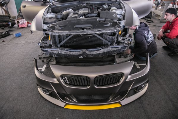 Ha a papírmunkát nem nézzük, a legnagyobb falat egyértelműen a fényezés volt. A csapat pénteken szétszedte az autót, és éjjel lefényezték. Az alap szürkét, a metálszemcsét és matt lakkot, összesen kilenc réteget röpke öt óra alatt tüsszentették a karosszériára. A Rieger-elemeket, azaz az első és hátsó lökhárítót, valamint a küszöbtoldatot csak másnap, szombaton fényezték le külön, hogy addig is haladjon a munka. A végeredmény minimum gusztusos lett, hisz az enyhén barnába hajló, matt fényezés nagyon jól kihozza a formás élekkel bőkezűen bánó Z4 vonalait.