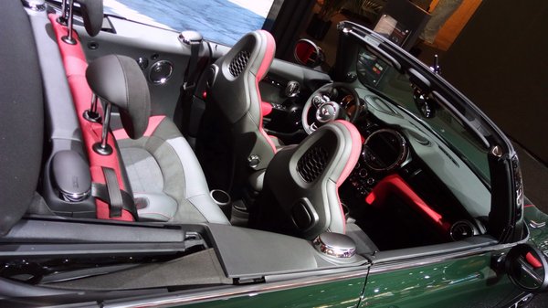 Alig kicsivel odébb, a látogatók által mellőzött fal előtt ácsorog egy zöld kabrió. A Mini standján járunk, térdig látogatóhiányban, pedig a kocsi újdonság: ez a John Cooper Works Convertible. A Mini történelmének eddigi legerősebb kabriója ez: kétliteres motorja 228 lóerős és 5,9 másodperc alatt húzza az autót százas tempóra. A JCW-kivitel egyébként sportkipufogót is kap, s mint minden Mini kabriónál, itt is üvegek az ablakok, motoros mozgatású a tető.