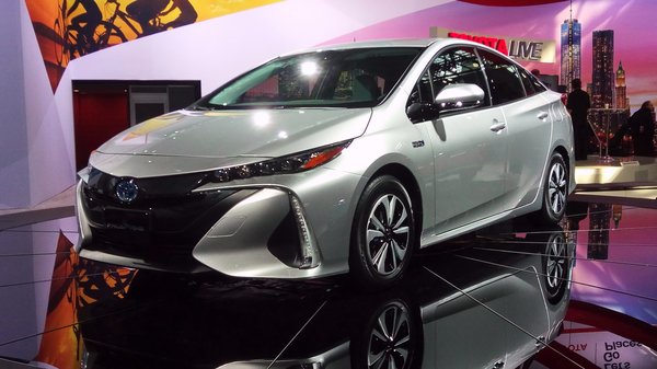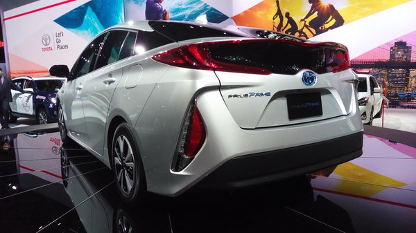 Akkor most megint a Toyota-stand, mert végre feltolták a forgózsámolyra a szalon egyik nagy attrakcióját: elkészült a negyedik generációs Prius plug-in verziója is, itt egyébként Prius Prime-nak hívják, nem tudom, hogy Európában is így lesz-e. 8,8 kWh-s akkucsomag, 35 kilométeres villanyhatótáv a két fontos jellemzője, különben meg plusz egy felirat az egész.