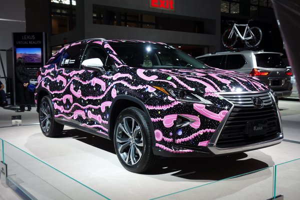 Egy standdal odébb kölniillatot érzek a levegőben – tán csak nem Paris Hilton járt itt? Vagy igen, vagy nem, mindenesetre olyan lábnyomot találok a szalon aljnövényzetében, ami akár tőle is származhat: Lexus RX rózsaszín telefonkagylós csillagos ég-kivitelben. Igen, jól látnak, ez az. Valami Jeremy Scott nevű divattervező munkája. Akárki is legyen ő, kérem, gyorsan öntsék forró aranyba a kezét, nehogy még tovább romboljon. Bugyogó savakkal a torkom tövében, kezem a szám elé tartva vonszolom magam tovább a Toyota standjára.