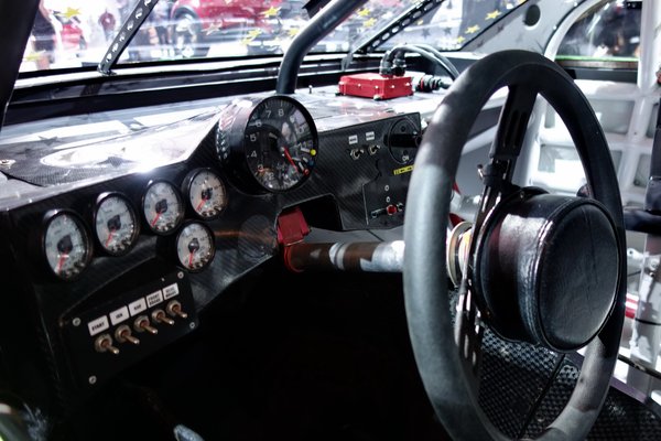 Hú de amerikai itt minden. Először is – végre testközelből látok egy NASCAR-Camryt. Persze egyetlen alkatrésze sem közös azzal az autóval, aminek a nevét hordozza (trollok biztos felhívják majd a figyelmemet valami kapcsolóra, nem reménykedem másban...), de így is izgalmas bedugni a fejem a cockpitba, ahol normálisan a drámák zajlanak. A versenyautó mindig klassz és valódi dolog a polgári járművek között.