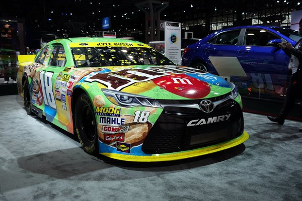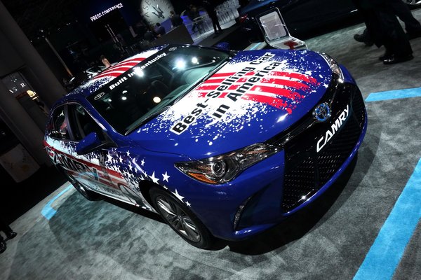 Eggyel a NASCAR-autó mögött szintén agyonfestegetett Camry, rajta büszke felirat: „Best-selling car in America”. Majd még egy a szélvédőn: „Made in Kentucky”. Ennél amerikaibbak már nem is lehetünk, nesze neked USA autóipara.