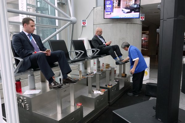 Meneküljünk a jobb sorsra érdemes, halott pavilonból, vissza a zsibongásba – ami New Yorkban azért nem olyan tyúkszemtiprós, kamerakézbőlkiverős, képbemindigbeleállósésotthosszanmobiltelefonálós, mint az európai szalonokon. Valahogy az egész hangulat megnyugtatóbb – az USA-ban sehol nem szól rossz zene, s itt, a szalonon sincs tuc-tuc (csak a Camaro-stand felől, néha), korrekt rockzene mindenütt, s az is sokat nyel a zajból, hogy az európaiakkal ellentétben itt minden vízszintes felületet vastagon padlószőnyegeznek. Nem lehet olcsó...