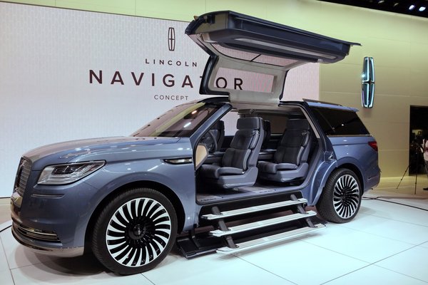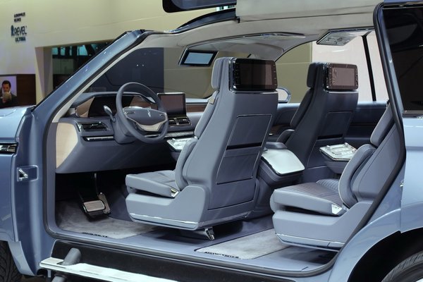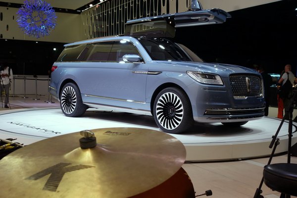 Vissza a fenti szintre, hátha találok még valamit. És igen, a show egyik legérdekesebb – azaz mondanám inkább leglátványosabbnak - autóját sikerül előtúrnom egy távoli, lapos standon: ez a Lincoln Navigator tanulmányautó. Fura, perverz módon szép. Lehet hogy a Tesla Model X-et koppintják vele (tényleg, hol a Tesla?), lehet hogy nem, de ez a böszme SUV is szárnyas ajtós.