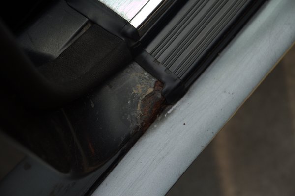 Ilyet még nem látott, kintről befelé hajlanak a lyuk szélei, nagyjából a hátsó üléstámla közepének magasságában. Csákány? Lövedék? Tűsarok? Sosem tudjuk már meg (az üléstámla szivacsán nem látszik semmi), de az biztos, hogy valakinek már csavarhatta az orrát a szag, mert a csipkés szélű lyukat leragasztotta leukoplaszttal. Az meg nem annyira bírja a benzint, amit megkapott, amikor meggondolatlanul teletankoltuk.