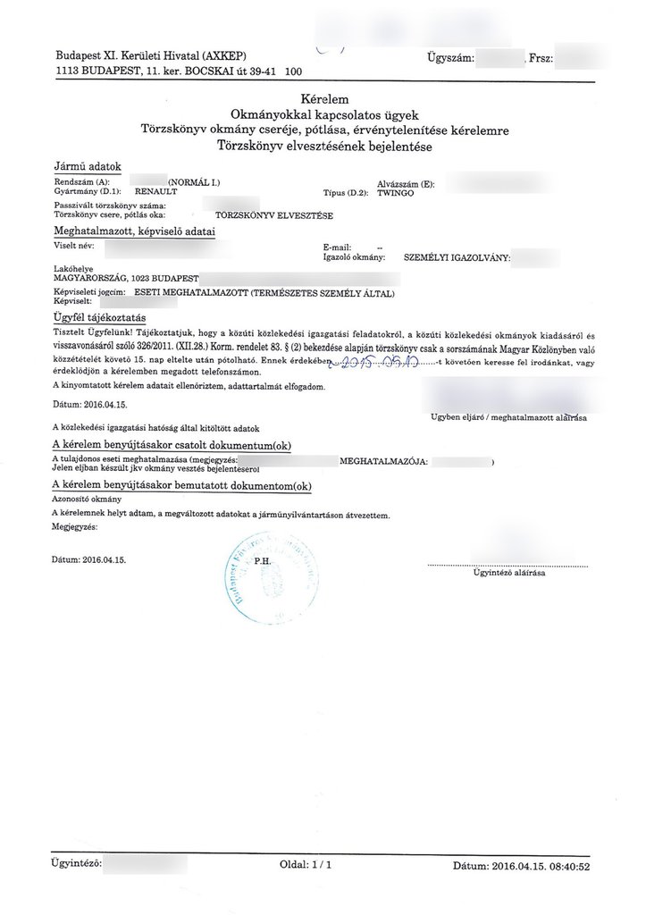 Más a helyzet viszont, ha el szeretnénk adni az autót. Ilyenkor ugye nem szívesen várunk további 2-3 hónapot, és fölösleges kiadásnak tűnik a hatezer forint is. Az interneten megoldást keresve a problémára találkoztam egy cikkel, amely szerint, hogy elég az adásvételin feltüntetni, hogy a törzskönyv elveszett, így az autó minden további teendő nélkül átírható. A valóságban nincs így.