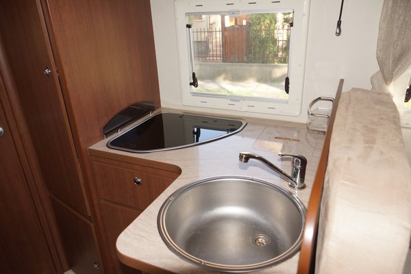 Van még kerámialapos tűzhely, hűtő fagyasztóval, csaptelep, és persze WC, valamint egy igazán helytakarékos zuhanyzó is. Ezek mellett az állófűtés és az állólélégkondi magától értetődik, igaz, utóbbinak külső áramforrás kell a működéshez. A lakóautók berendezésérő rossz emlékeim voltak: gyanús minőségű, csesznye műanyag eszközök, amelyek csak komoly kompromisszumok árán használhatóak, de pár kilométer után úgy tűnik, hogy itt is nagyot fordult a világ, határozottan kellemes a beltér.