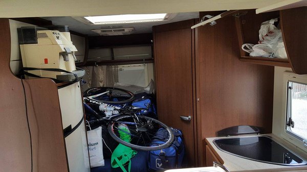 Miközben Ferenc megmutatta a flottát, tudatosult bennem, hogy mennyire komoly infrastruktúra van egy csapat mögött. És ez még csak az országon belüli versenyre való felkészülés, de a Szuper Beton bringásai tekernek például a Marokkói Körversenyen is, akkor az egész csapatot kell átlogisztikázni egy másik kontinensre. A Tour de Hongrie-ra innen is sok sikert kívánunk a srácoknak, a lakóautón vélhetően nem fog múlni a siker.