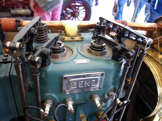 Visszatérve a lökettérfogat-fétishez: itt van egy másik fél-replika is, 21,5 literes térfogattal. Ugye? Az 1909-es Blitzen-Benz az, amellyel két évvel később sikerült megdönteni az addigi 205 km/h-s sebességi rekordot az amerikai Daytona Beach-en. Azt mellesleg addig egy Stanley gőzautó tartotta. Hat ilyen Benz 200 PS Typ RE készült 107 évvel ezelőtt Stuttgartban. Célgép volt mind: valamelyiknek át kellett lépnie a 200 km/h-s álomhatárt. Ezt bőven sikerült túlteljesíteni később.